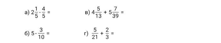в) 4 5/13+ 5 7/39= (4+5)+ ( 5/13 + 7/39)= 9+22/39= 9 22/39