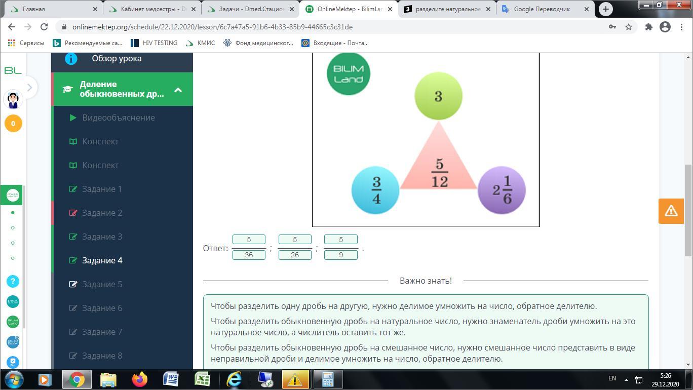 разделите натуральное число на числа в кружочках и расположи ответы в порядке возрастания 5/12:3/4; 5/12:2 1/6; 5/12:3