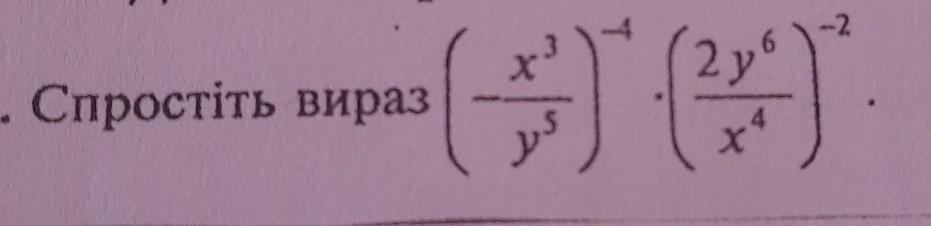 х^(-12)/у^(-20) × 2^(-2)у^(-12)/х^(-8) = 1/4×х^(-4)у^8=у^8/(4х^4)