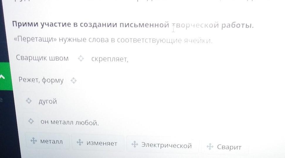 «перетащи» нужные слова в соответствующие ячейки.
