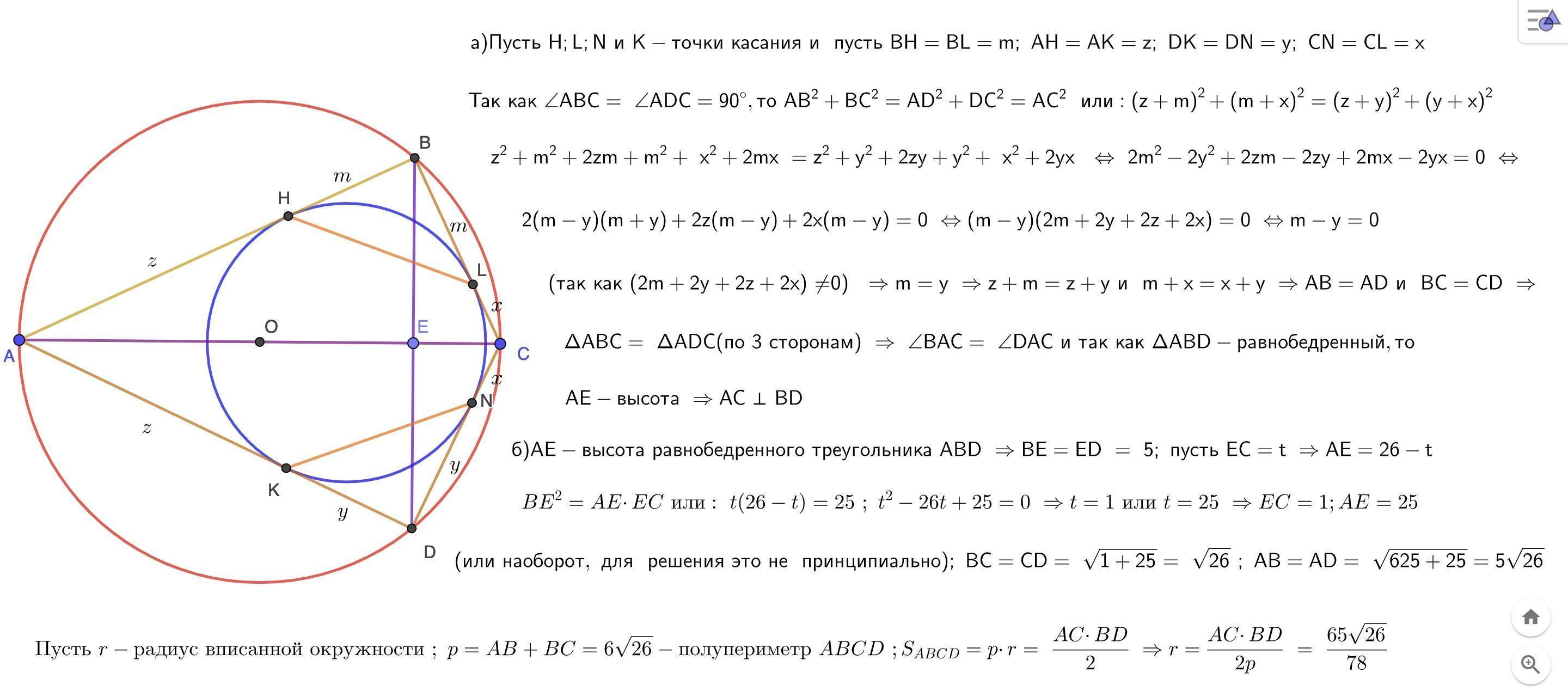 б) Найдите радиус вписанной окружности четырёхугольника ABCD , если