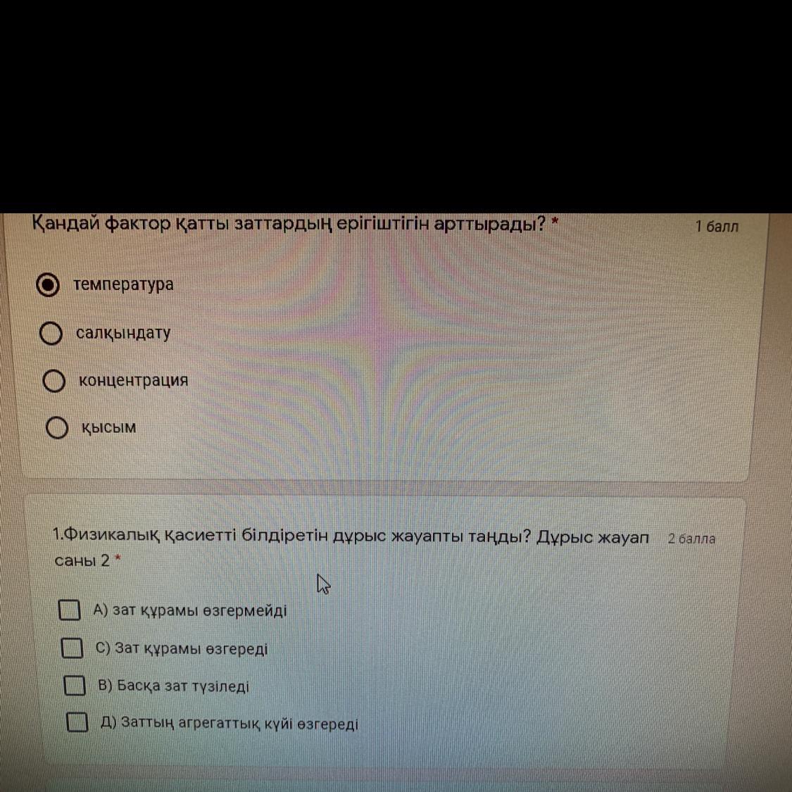 1.Физикалық қасиетті білдіретін дұрыс жауапты таңды? Дұрыс жауап