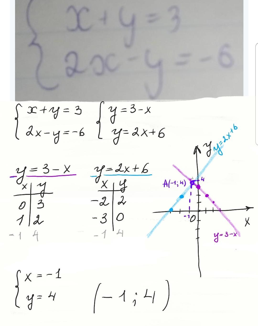 Находим точки,строим графики,находим точку пересечения графиков с координатами х= -1,у= 4