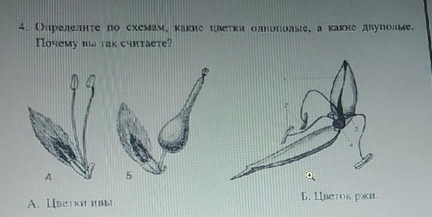 Определите по схемам, какие цветки однополые, а какие двуполые.