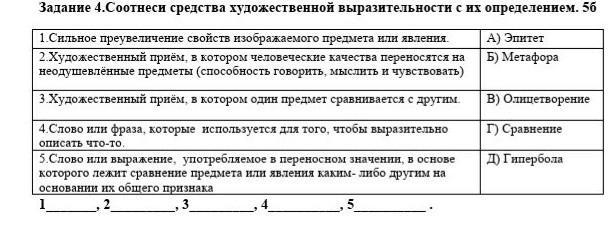 Задание 4.Соотнеси средства художественной выразительности с их определением. 5б
