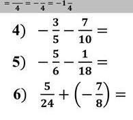 6) 5/24 + (-7/8) = 5/24 - 21/24 = -16/24 = -2/3