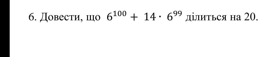 Довести, що 6 100 + 14 ∙ 6 99 ділиться на 20.