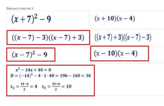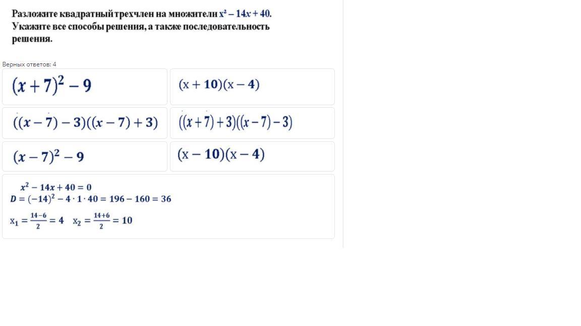 разложите квадратный трех член на множетили x^2-14x+40 укажите все способы решения 40 баллов