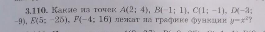 Какие из точек А(2;4), В(-1;1), С(1;-1), D(-3;-9), Е(5; -25), F(-4:-16) лежат на графике функции у = х²?