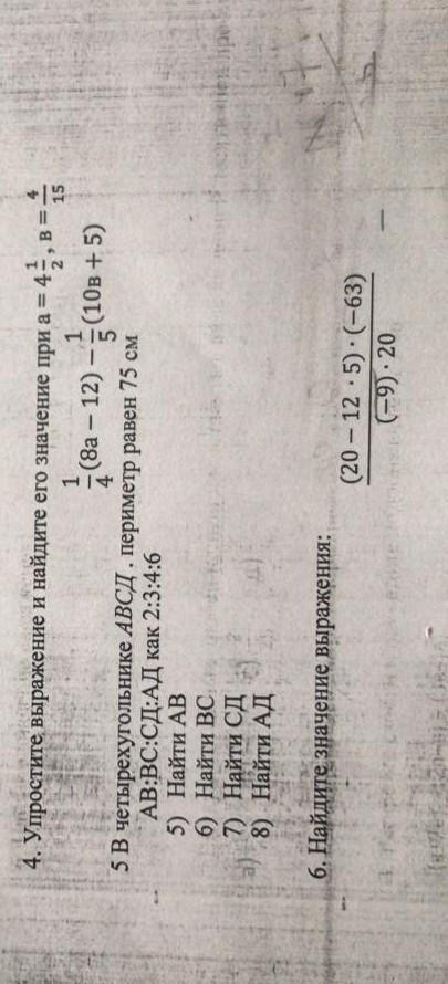5. АВ:ВС:СД:АД = 2:3:4:6 Р = 75 см