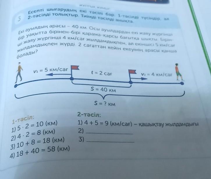 Жауабы : 2 сағаттан кейін екеуінің арасы 58 км болады.