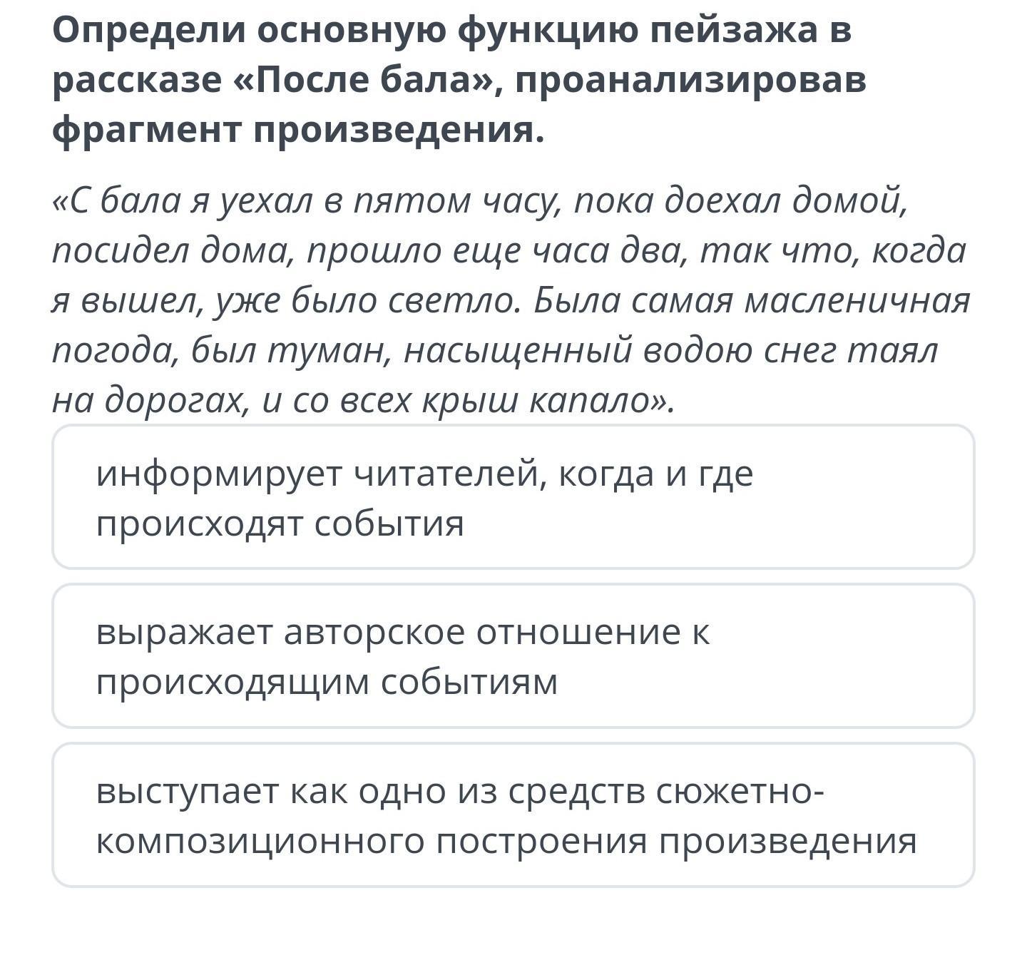 Определи основную функцию пейзажа в рассказе После Бала проанализировал фрагмент произведения