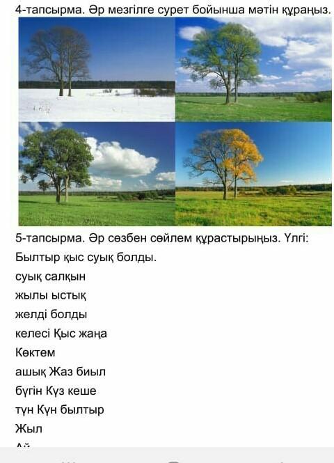 Күз суық мезгіл. Күзде жапырақтар сарғайып түседі. Ауа райы суиды. Бұлтты болып, жел болады. Жауын шашын көп түседі