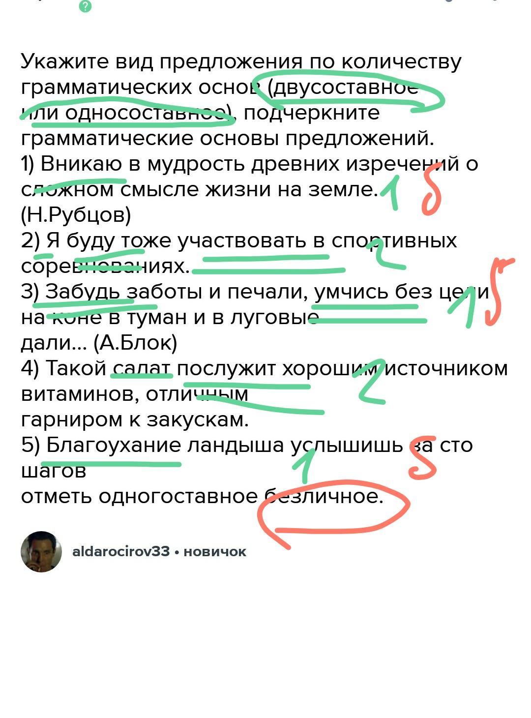 Укажите вид предложения по количеству грамматических основ (двусоставное