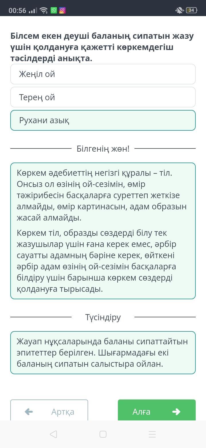 Білсем екен деуші баланың сипатын жазу үшін қолдануға қажетті көркемдегіш тәсілдерді анықта
