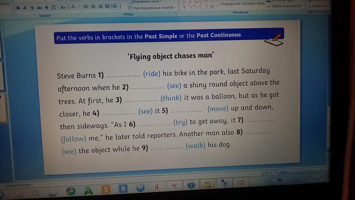 1. rides; 2. saw; 3. thinked; 4. saw; 5.moved;6. tried; 7. follows; 8. saw; 9.walked.