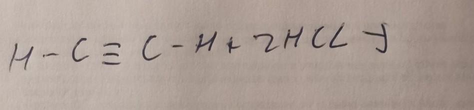 Ответ: H-C ≡ C-H+ HCI → CH2=CHCI ( получился винилхлорид, р-я идет при нагревании и в присутствии катализатора HgCI2)