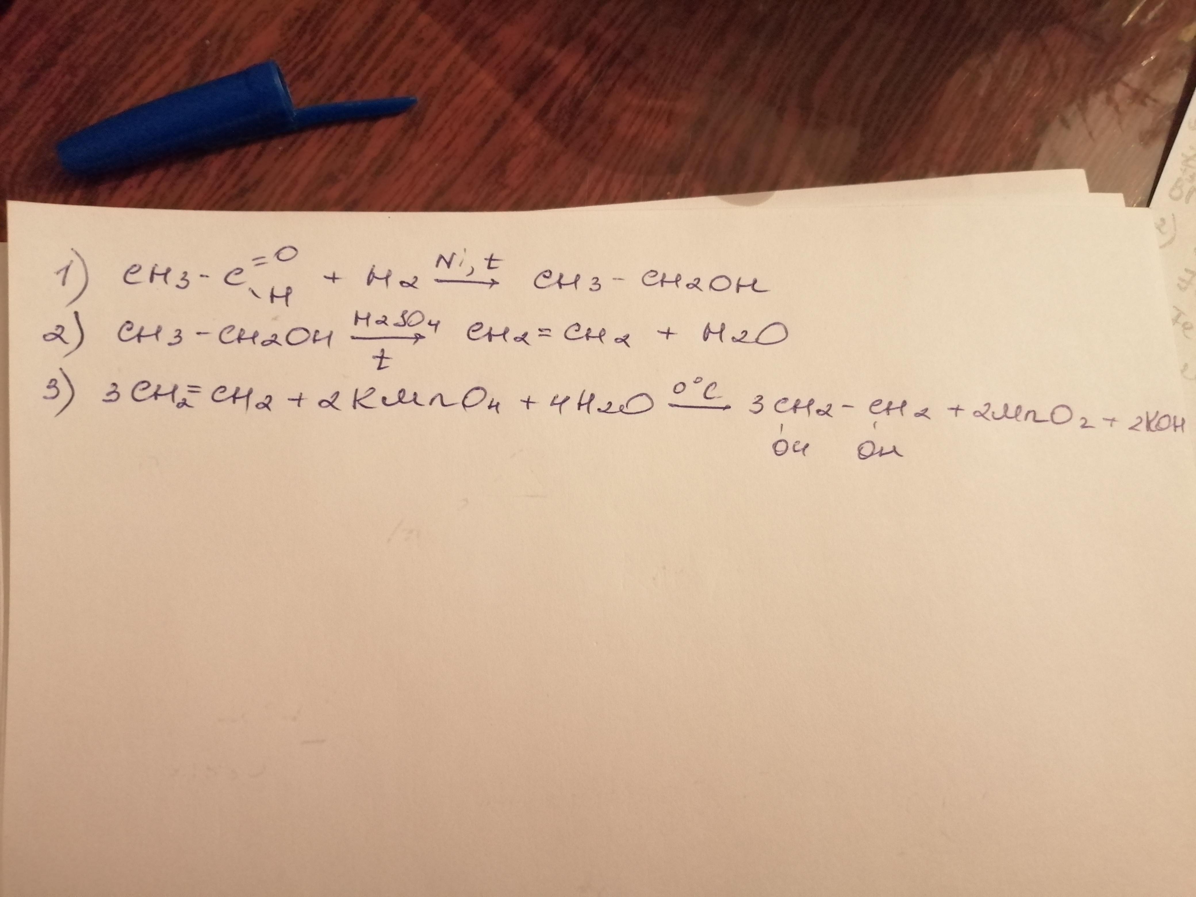 CH3COH → С2Н5ОН → С2Н4 → С2Н4(ОН)2