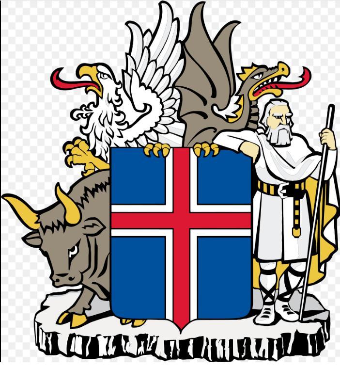Это Исландия, на гербе которой нарисован бык, великан, гриф и дракон.Это небольшое островное государство в северной части Атлантического океана, площадью 100 тыс. км².