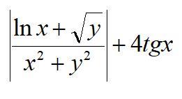 s:=abs((ln(x)+sqrt(y))/(sqr(x)+sqr(y)))+4*tan(x);