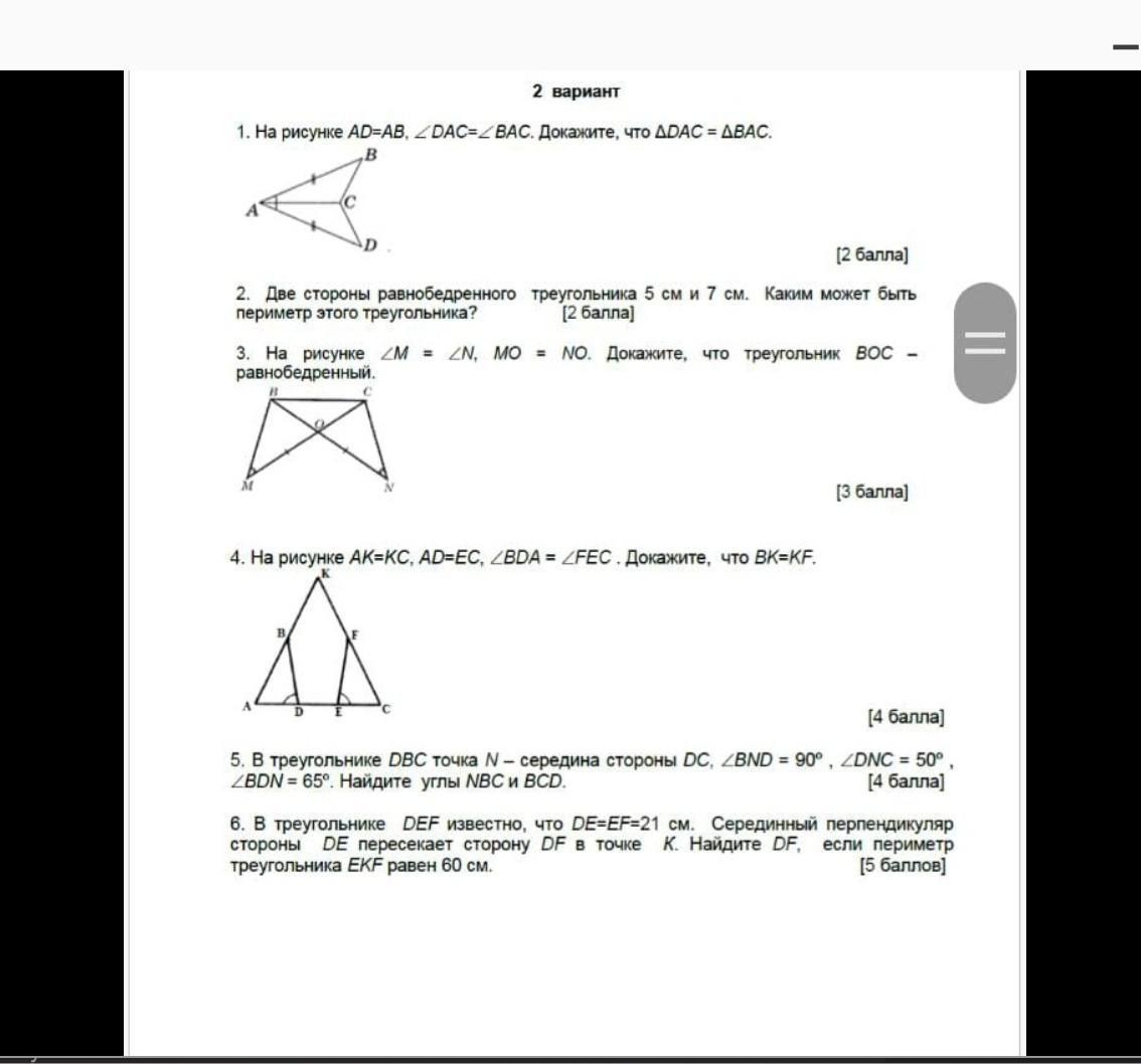 1) Т.к. AC общая сторона треугольников, то по 2 признаку равенства DAC=BAC