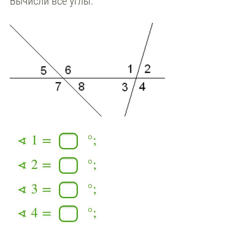 Известно, что ∢4=137°,∢5=71°. Вычисли все углы.