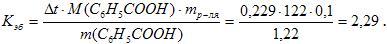 Молярная масса бензойной кислоты 122 г/моль. Из формулы (1) находим эбуллиоскопическую константу: