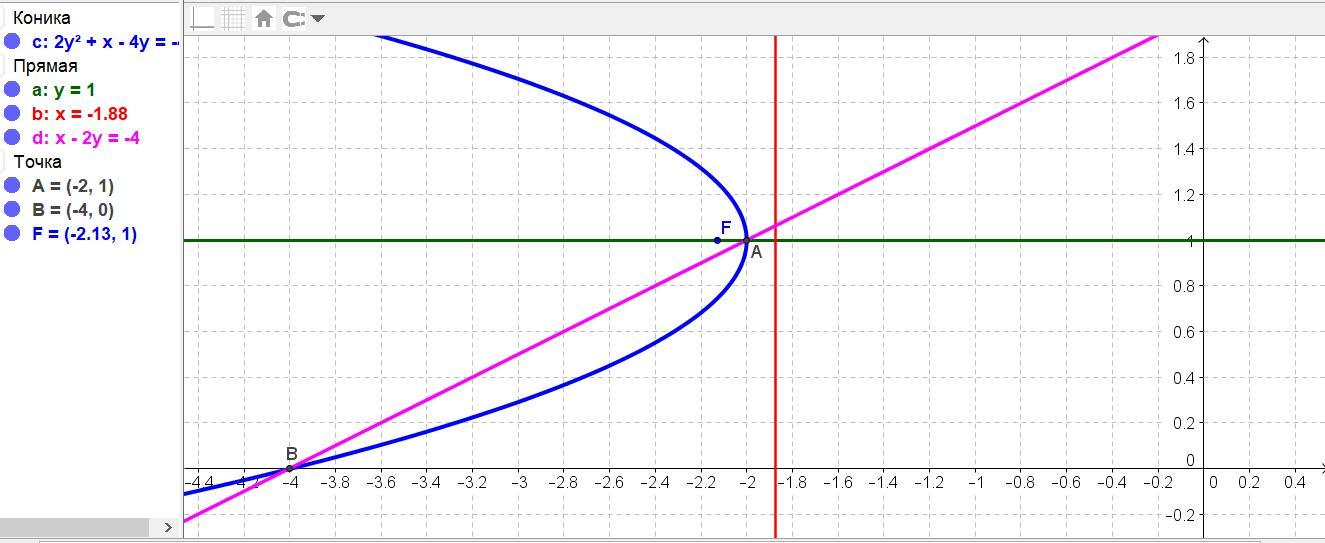 Даны кривая x+2y²-4y+4=0 и прямая x-2y+4=0.