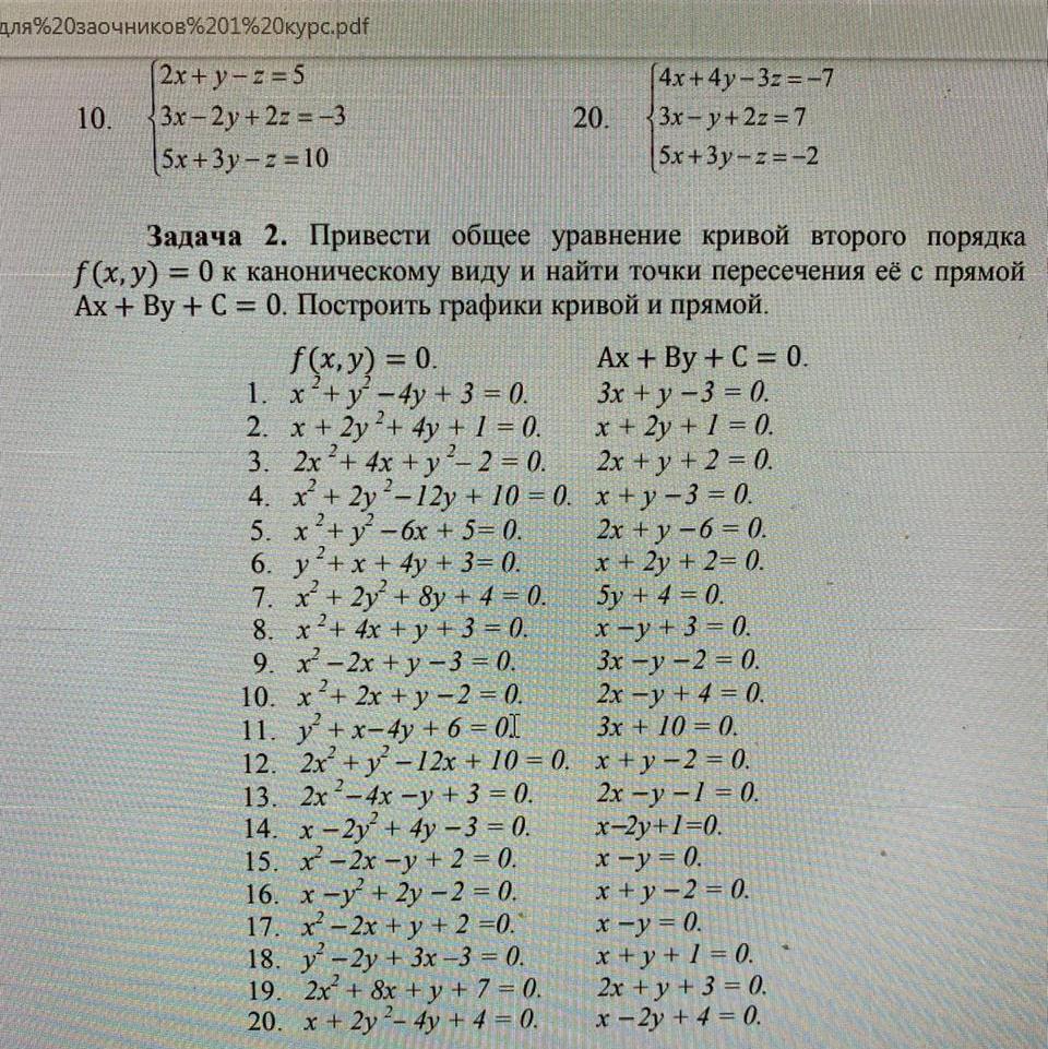 привести общее уравнение кривой второго порядка к каноническому виду и найти точки пересечения ее с прямой x+2y^2-4y+4=0; x-2y+4=0