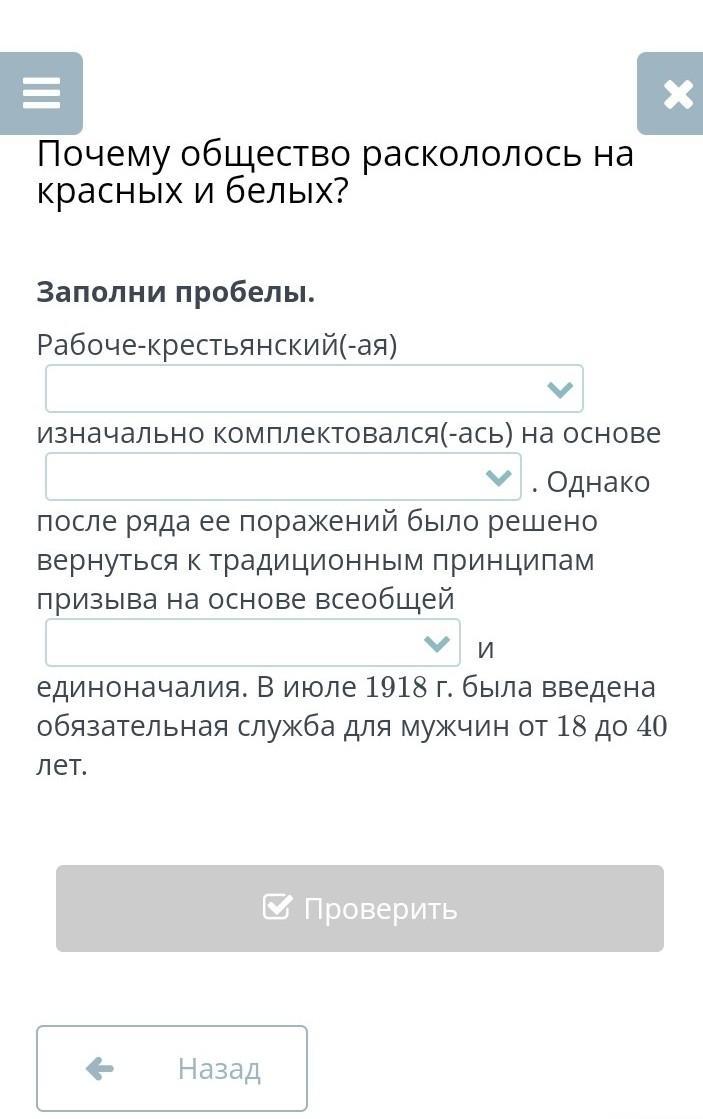 Ответ:Рабоче-крестьянский(-ая) Красная армия