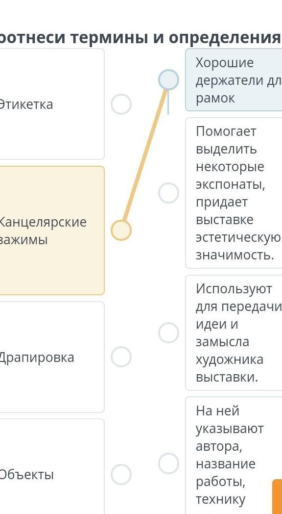 Соотнесите термины и определения этикетика канцелярные зажимы драпировка Объекты