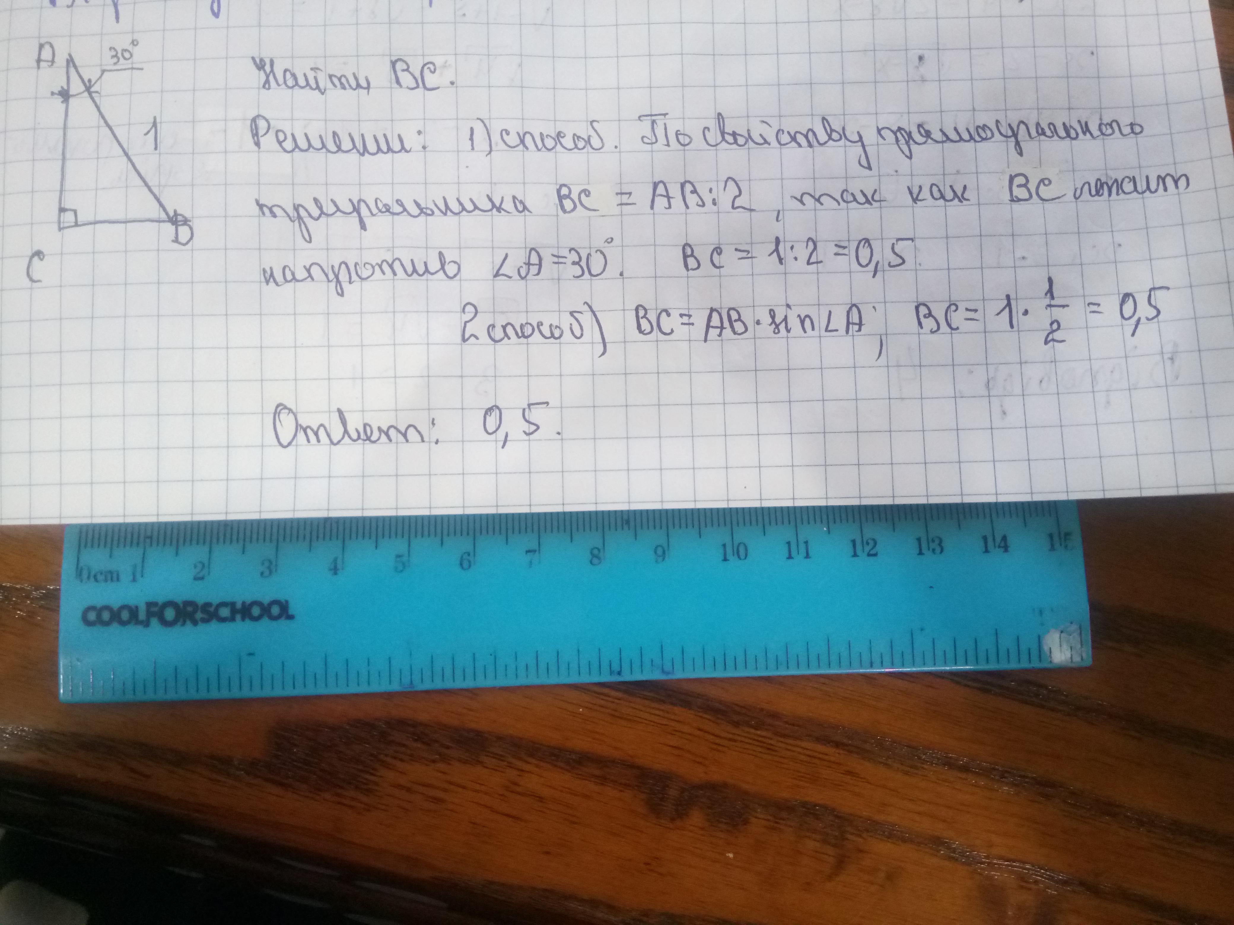 В треугольнике АВС угол С равен 90°,угол А равен 30°, АВ=1. Найдите ВС.с чертежом