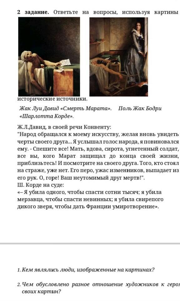 Ответ:голос народа, Мать, вдова, сирота, угнетенный солдат, и это суд на первой картинки Марат на второй картинке Шарлотта Корде