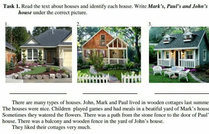 Read the text about hauses and identify each house. Mark's, Paul's, John,'s house under the correct pucturr