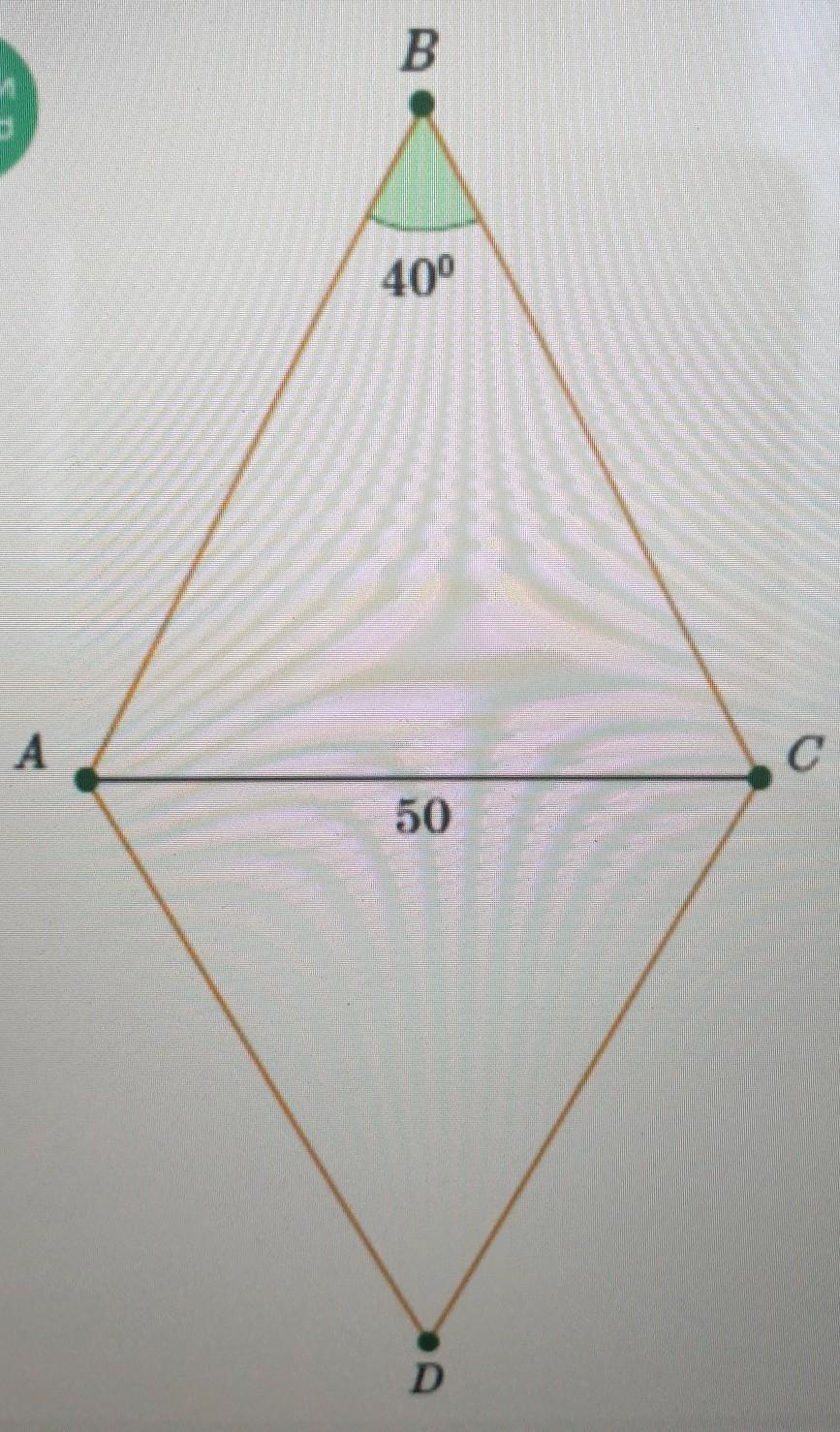 В ромбе ABCD меньшая диагональ АС = 50, острый угол ZB = 40°. Найди периметр ромба. Ответ