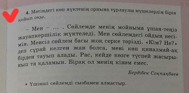 Мен бастауышпын. Сөйлемде менің мойныма ұшан-теңіз жауапкершілік жүктеледі. Мен сөйлемдегі ойдың иесімін. Менсіз сөйлем басы жоқ серке тәрізді. «Кім? Не?» деп сұрақ келген жан болса, атау тұлғада тұрған мені қиналмай бірден тауып алады. Рас, кейде көзге түспей жасырынып та қаламын. Бірақ ол менің кінәм емес...