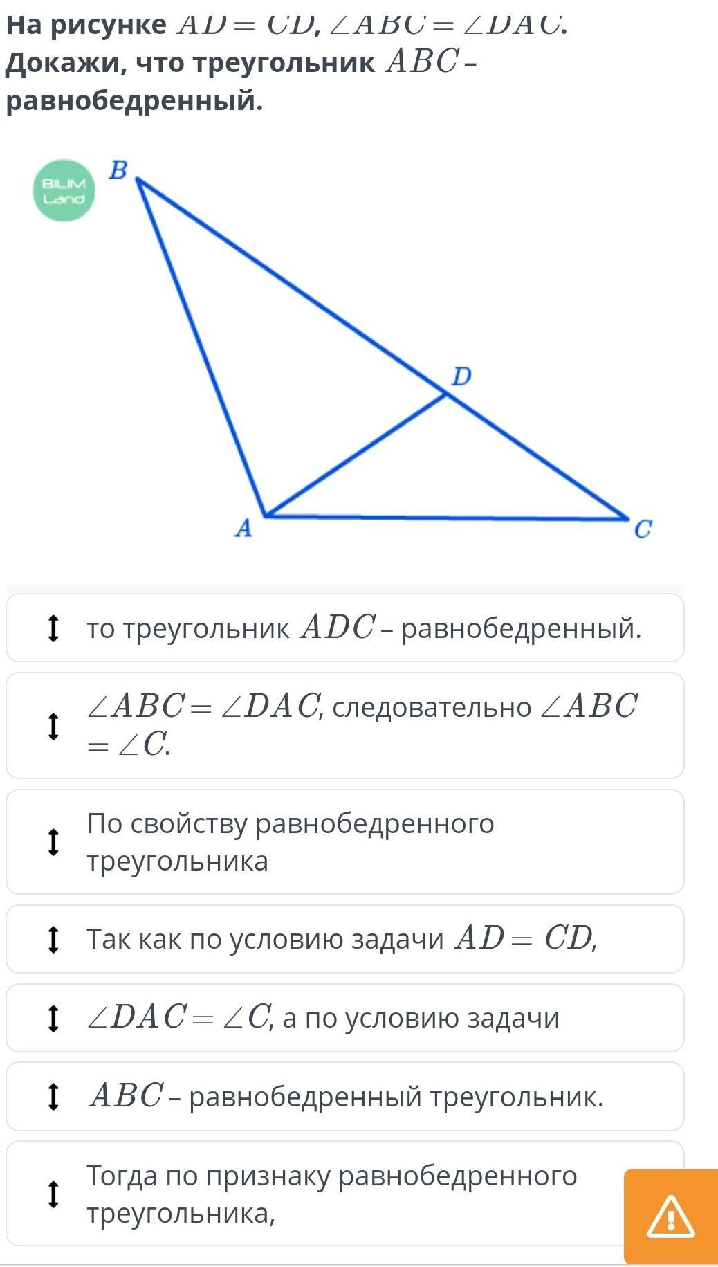 Тогда по признаку равнобедреного треугольника, АВС-равнобедренный треугольник.