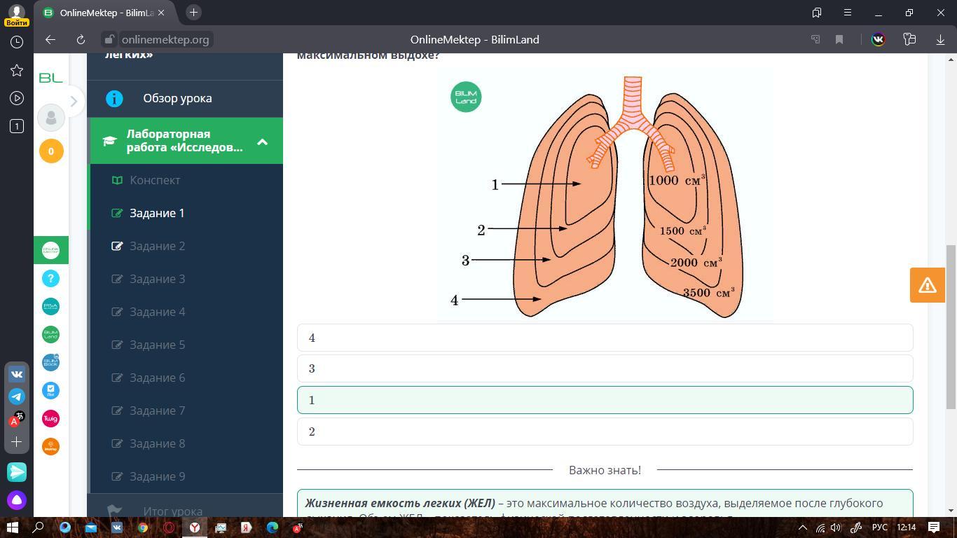 ЛАБОРАТОРНАЯ РАБОТА «ИССЛЕДОВАНИЕ ЖИЗНЕННОГО ОБЪЕМА ЛЕГКИХ»