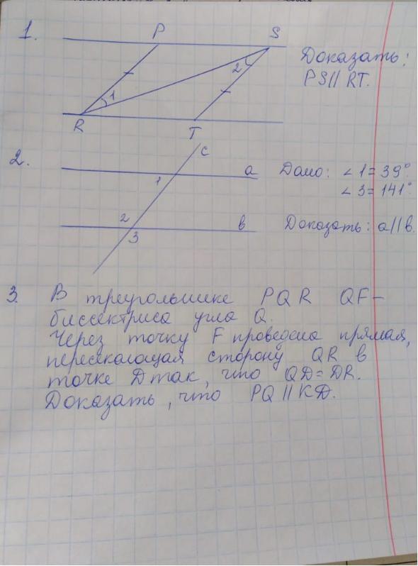 В 1 задании, я так понимаю, угол R = углу S, так что по св-ву эти прямые ||