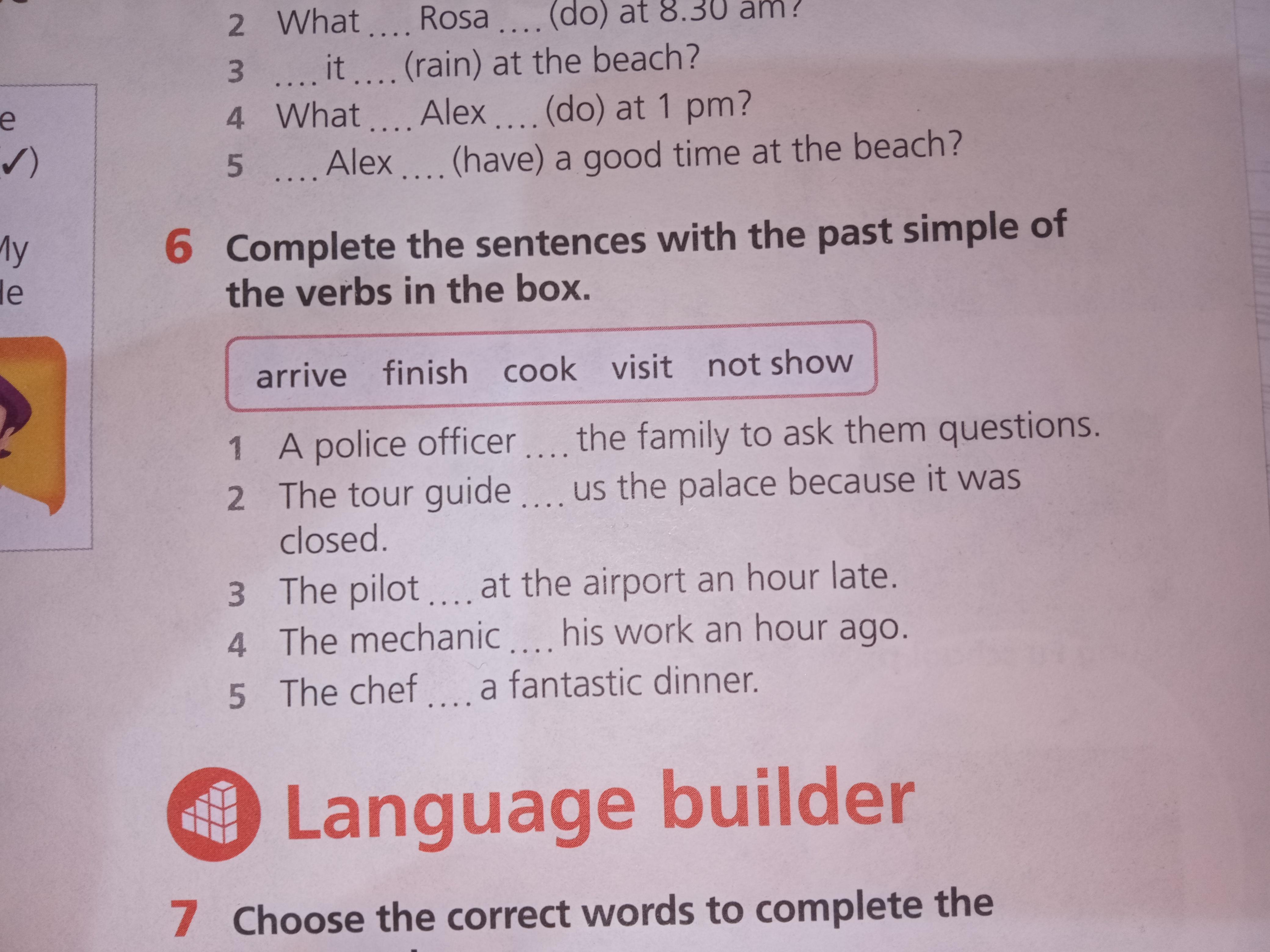 1.visit 2. not show 3.arrive 4.finish 5.cook