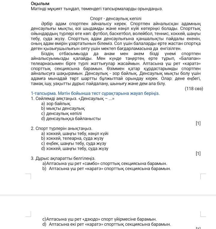 1.А)Ден саулық зор байлық