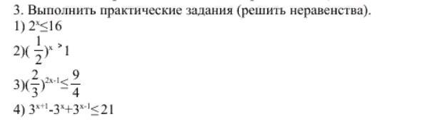 Показаельные неравенство, решить легкие задачки, желатель чтобы было на тетриде сфоткано, спасиб большое заранее