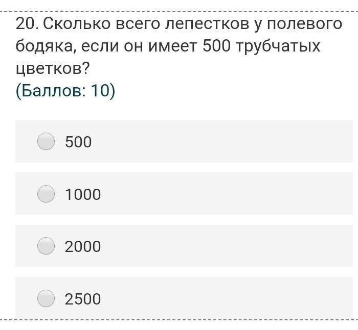Сколько всего лепестков у полевого бодяка, если он имеет 500 трубчатых цветков?