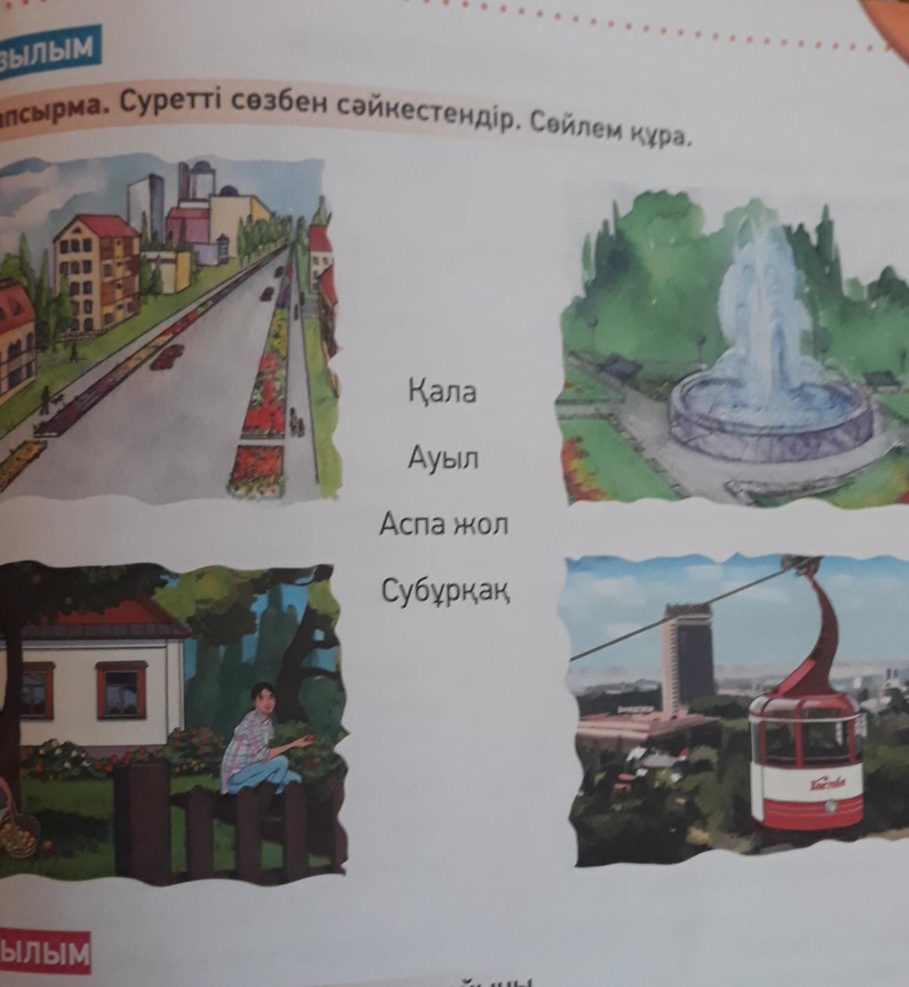 написать 4 предложения по казахскому языку со словами: қала, Ауыл, Аспа жол, субұрқақ