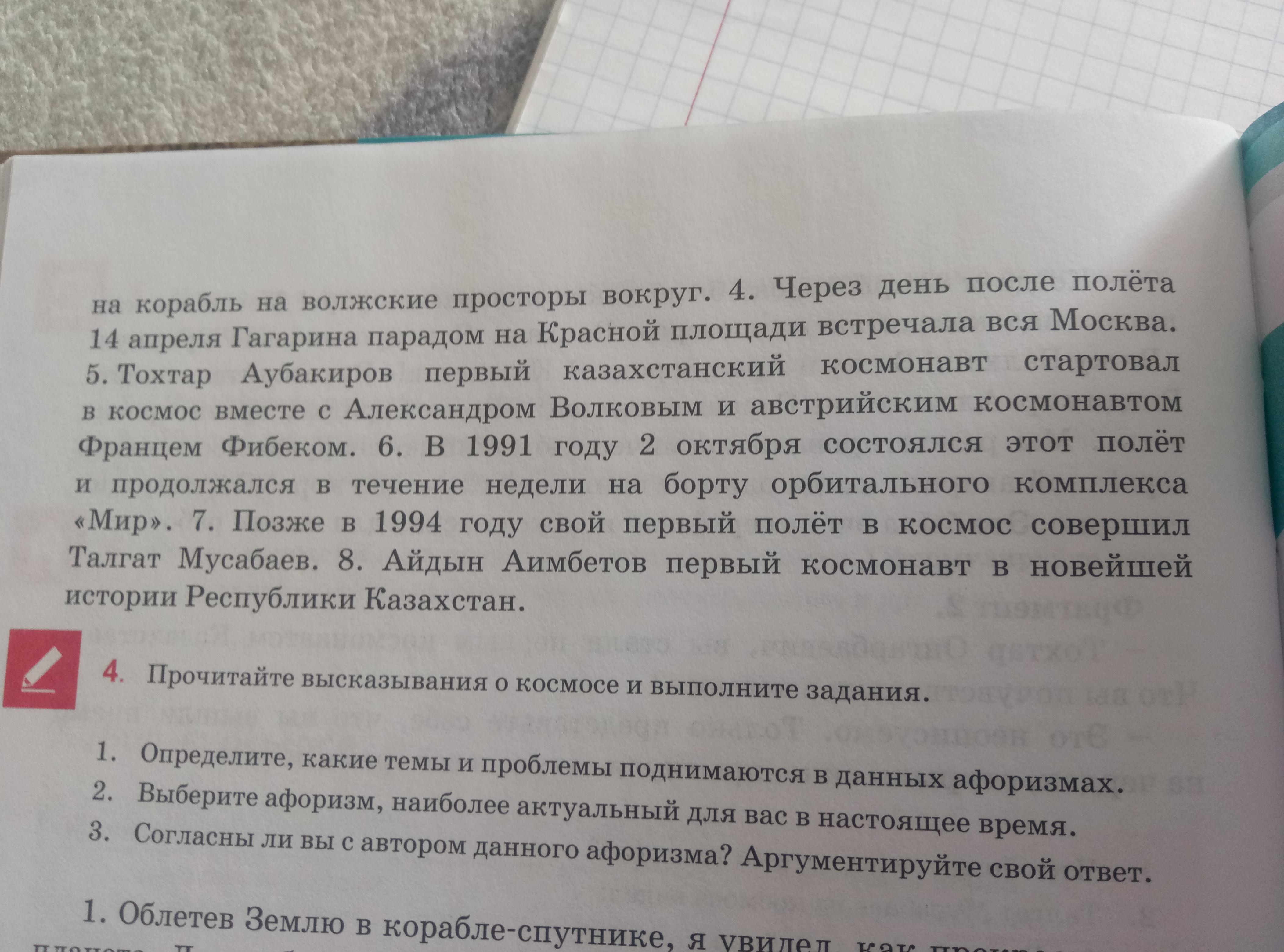 5. Тохтар А. , первый казахстанский космонавт, стартовал...