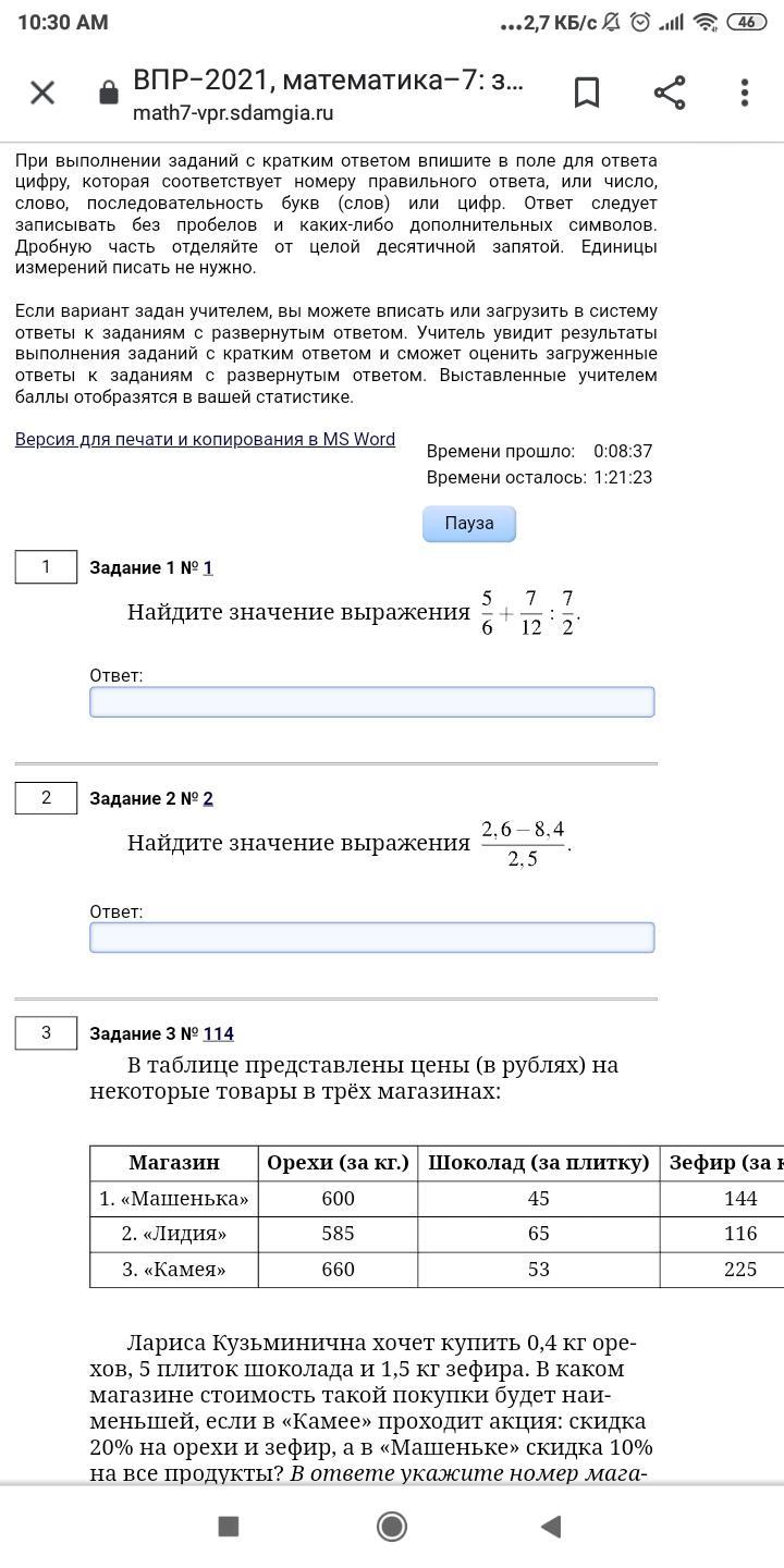 3) "Машенька" орехи 600 * 0,4 = 240 - 10% = 216;
