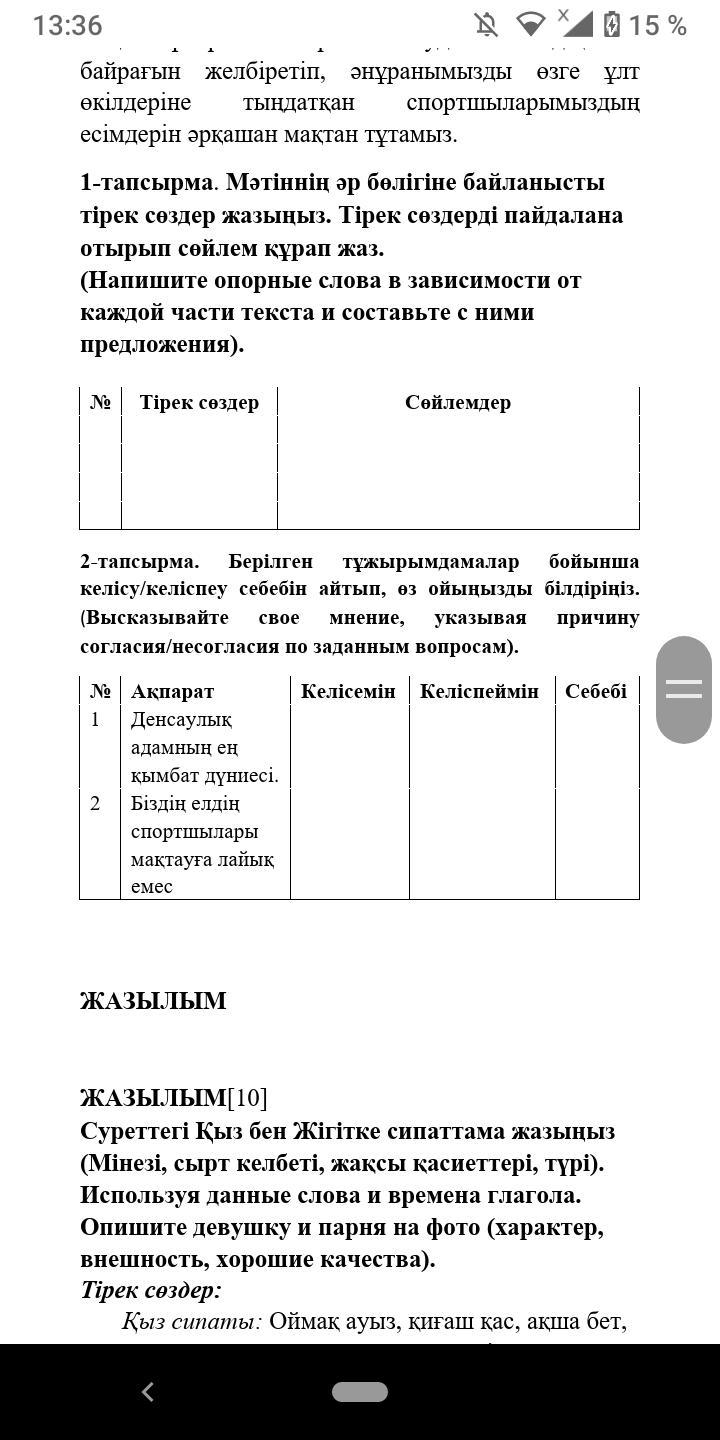 2-тапсырма. Берілген тұжырымдамалар бойынша келісу/келіспеу себебін айтып, өз ойыңызды білдіріңіз. (Высказывайте свое мнение, указывая причину согласия/несогласия по заданным вопросам).