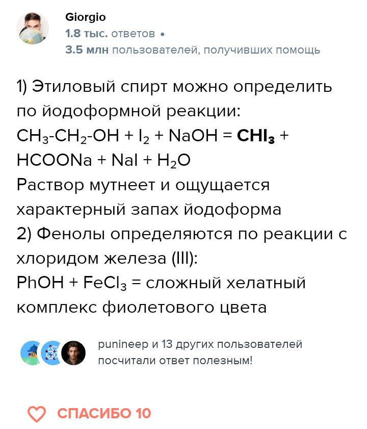 За допомогою якої речовини можна відрізнити етанол від фенолу: а) натрію б) розчину гідроксиду натрію. Записати рівняння реакції