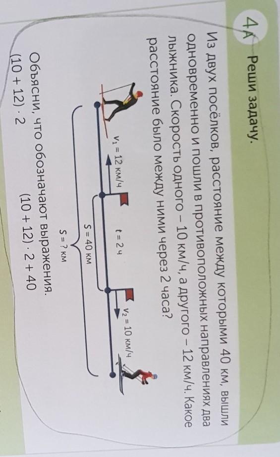 лыжника. Скорость одного – 10 км/ч, а другого – 12 км/ч. Какое