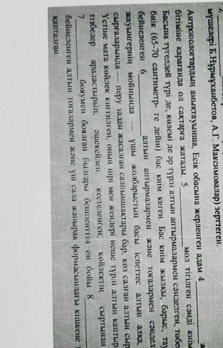 Антропологтардың анықтауынша,Есік обасына жерленген адам 17-18 жасар,бет бітіміне қарағанда ол сақтарға жатады.Алтын жіппен мол тігілген сәнді киім киінген.Басына түгелдей түрі де көлемі де әр түрлі алтын аптырмалармен сәнделге,төбесі шошақ,биік әріқарай білмейді екенмін:-)